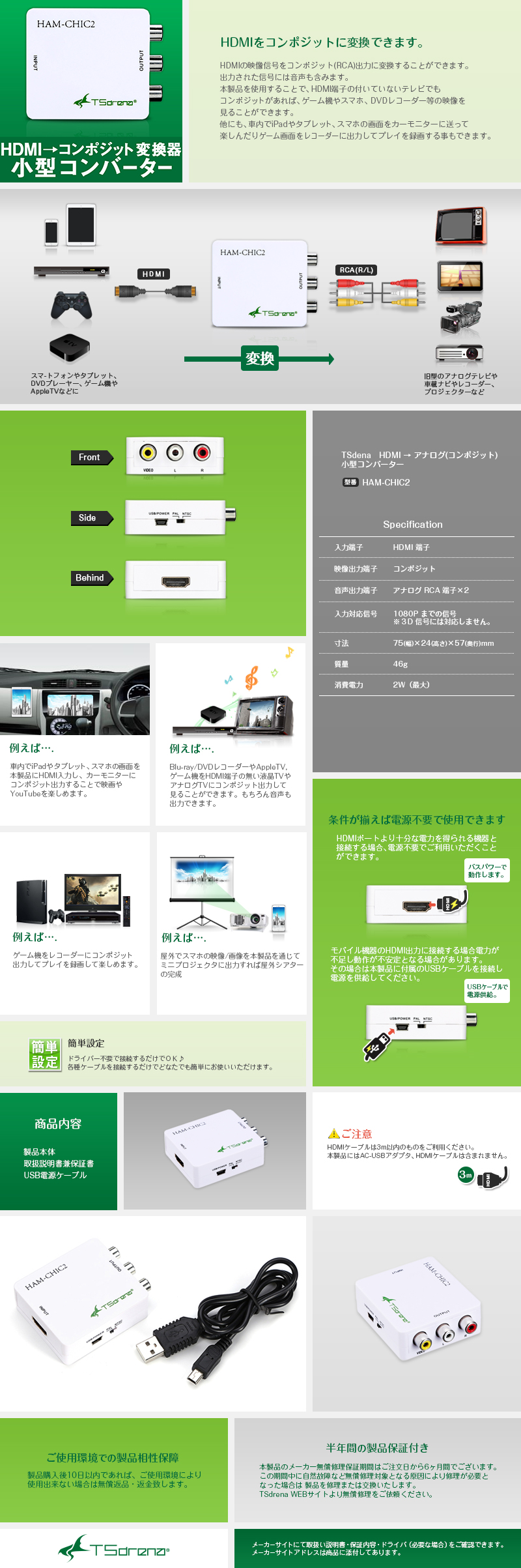 HDMI信号をテレビなどのコンポジット信号にダウンバージョンするHDMIコンバーター です。